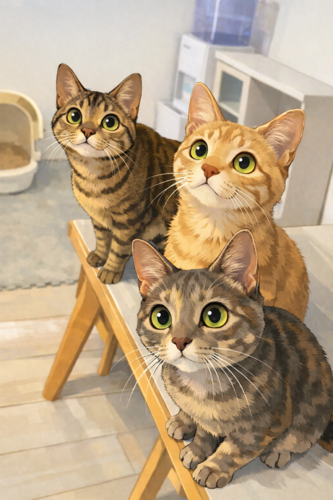 我が家の猫はシニアと若者で世代が分かれていますが、