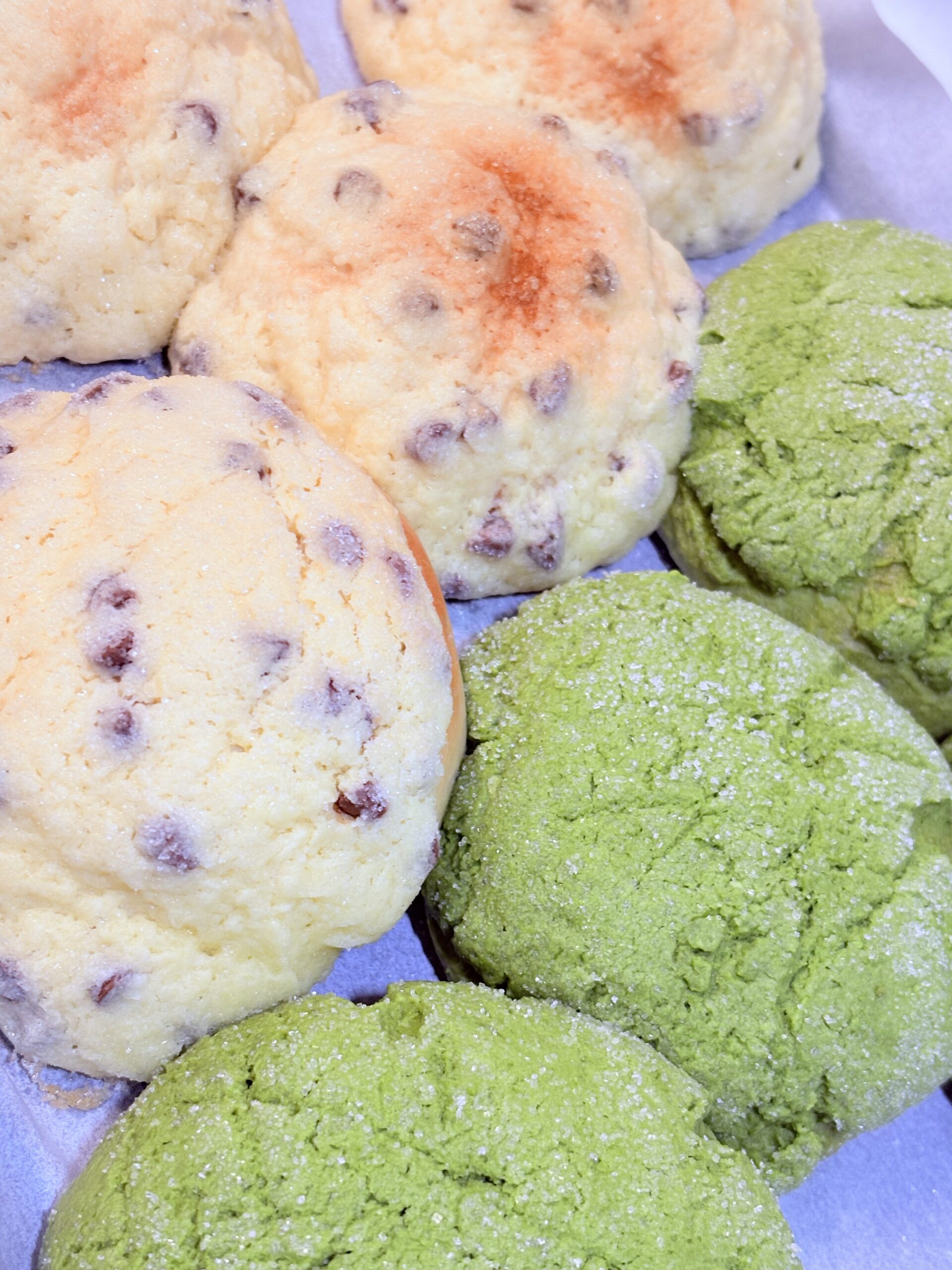 今回はチョコチップメロンパンと抹茶メロンパン。